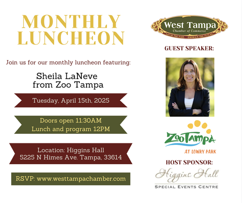 Monthly luncheon featuring speaker: Sheila LaNeve from Zoo Tampa